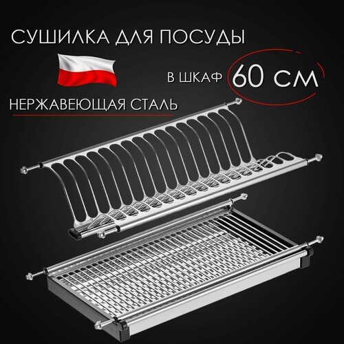 Сушилка для посуды в шкаф 60 см, 600 мм, Сушка на кухню, Посудосушитель, С поддоном, Двухуровневая, Посудосушка, Нержавейка