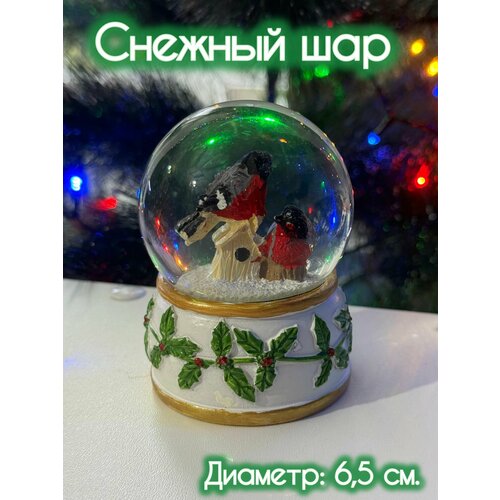 Сувенир новогодний "Волшебный шар со снегопадом" в виде Снегирей, высота 9,5 см
