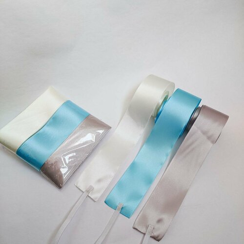Свадебные ленты на машину, триколор (мини), бежевый, кремовый, голубой