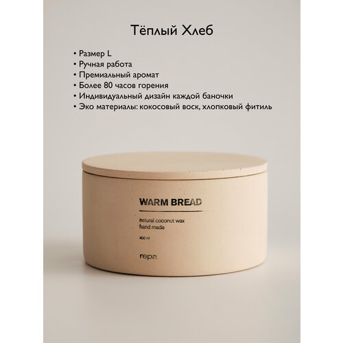 Свеча ароматическая repa home decor "Тёплый Хлеб - Кокосовая свеча" в стакане из гипса с хлопковым фитилём, 40 часов горения, 7,5 см х 7,8 см