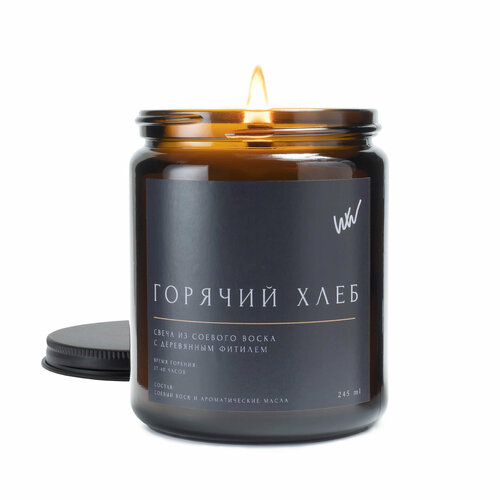 Свеча ароматическая WHALEWAY "Горячий хлеб", соевый воск/деревянный фитиль, 245 m