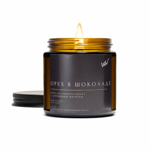 Свеча ароматическая WHALEWAY "Орех в шоколаде", соевый воск/деревянный фитиль, 110 ml