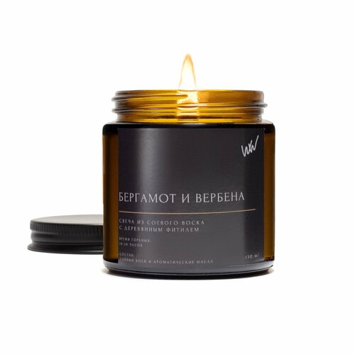 Свеча ароматическая WHALEWAY "Бергамот и вербена", соевый воск/деревянный фитиль, 110 ml