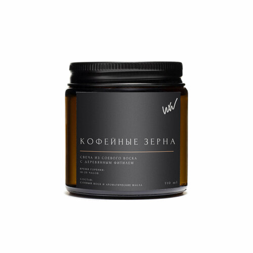 Свеча ароматическая WHALEWAY "Кофейные зерна", соевый воск/деревянный фитиль, 110 ml