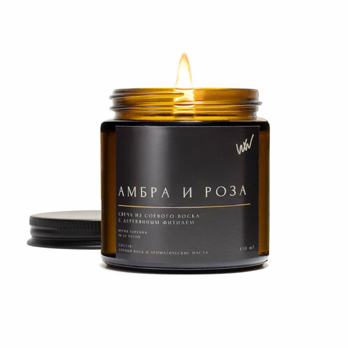 Свеча ароматическая WHALEWAY "Амбра и роза", соевый воск/деревянный фитиль, 110 ml