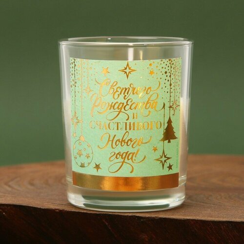 Новогодняя свеча в стакане «Светлого Рождества и счастливого Нового года», аромат ваниль, 5 х 5 х 6 см