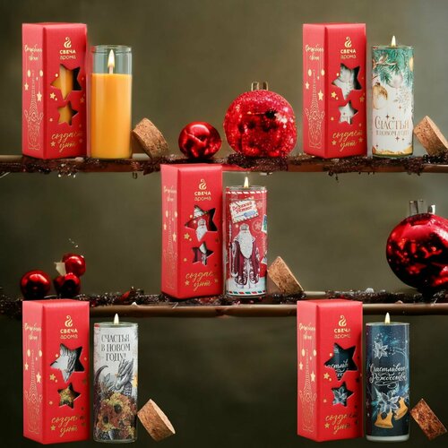Набор высоких свечей с декором "Любви в Новом году", 9,5 х 20 см / Новый год
