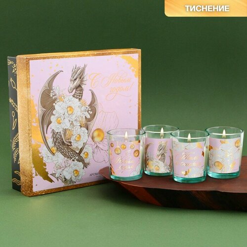 Зимнее волшебство Новогодние свечи в стакане «Волшебный Дракон», набор 4 шт, лаванда