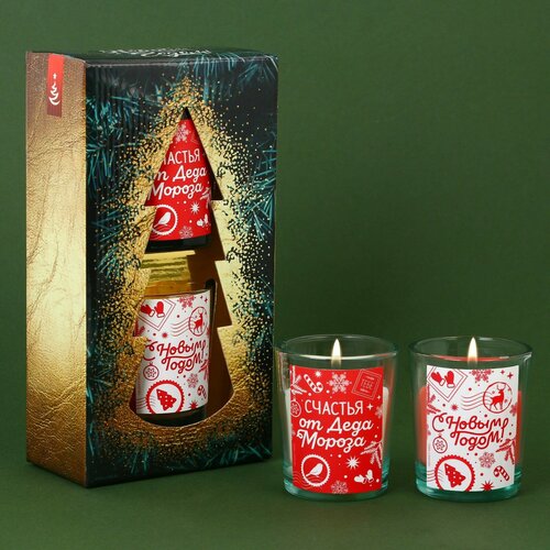 Новогодние свечи в стакане «Счастья от Деда Мороза», корица и апельсин, набор 2 шт.
