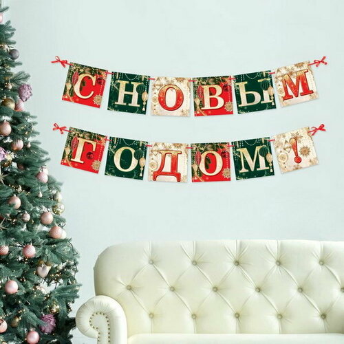 Гирлянда на ленте "С Новым Годом!", новогодние игрушки, дл. 200 см