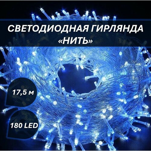 Светодиодная гирлянда "Нить" 17,5 метров 180 Led, синего цвета