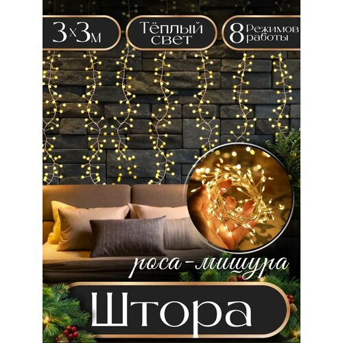 Гирлянда-штора Kosmo.store "Роса-Мишура" жёлтая, 3х3 м