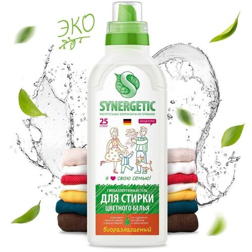 Жидкое средство для стирки Synergetic, гель, для разноцветных тканей, гипоаллергенное, 750 мл./В упаковке шт: 1