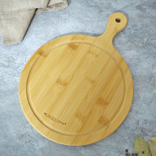 Доска для сервировки из бамбука с ручкой, размер 37х28х1,2 см