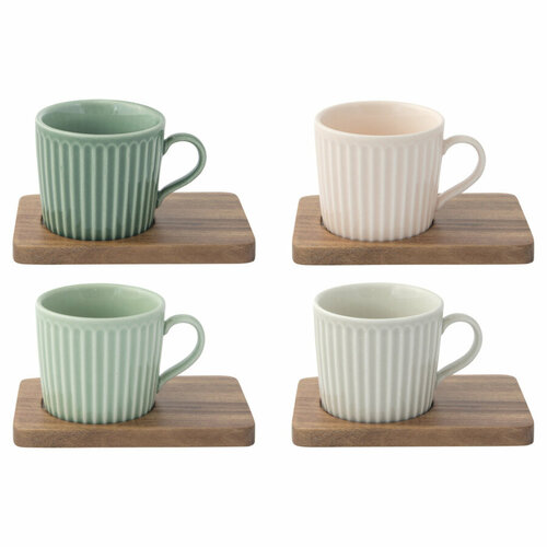 Набор чашек кофейных Easy Life Время отдыха 110 мл, 4 шт, фарфор твердый, дерево, зеленая, светло-зе