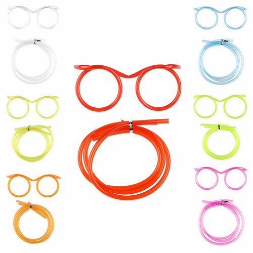 Трубочки Очки для коктейлей (пластик), 7 цветов в ассортименте, 1 шт.