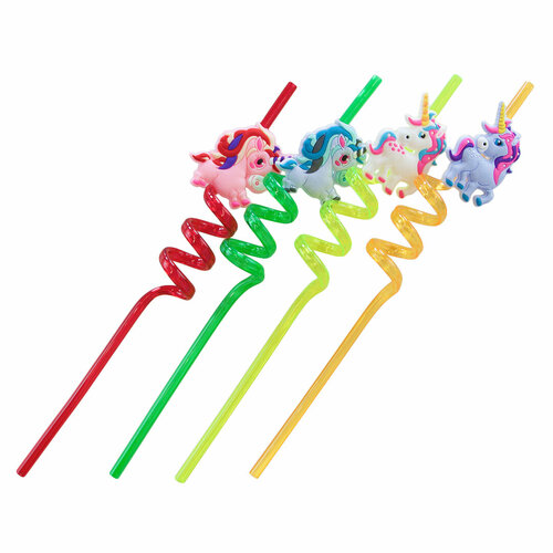 Трубочки для коктейлей (пластик), Единороги, Разноцветный, 4 шт. в упак.
