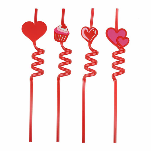 Трубочки для коктейлей (пластик), Сладкая любовь, Красный, 4 шт. в упак.