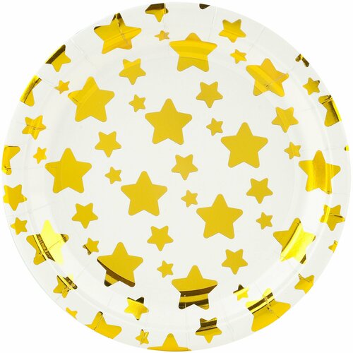 Тарелки (9'/23 см) Звезды Микс, Белый/Золото, Металлик, 6 шт.