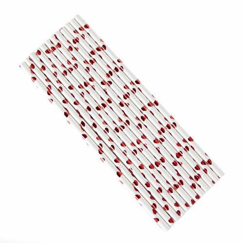 Трубочки для коктейлей, Сердечки, Белый/Красный, металлик, 12 шт. в упак.