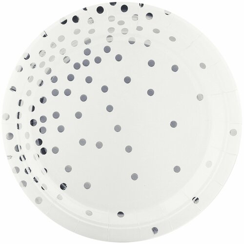 Тарелки (9'/23 см) Серебристые конфетти, Белый/Серебро, Металлик, 6 шт.