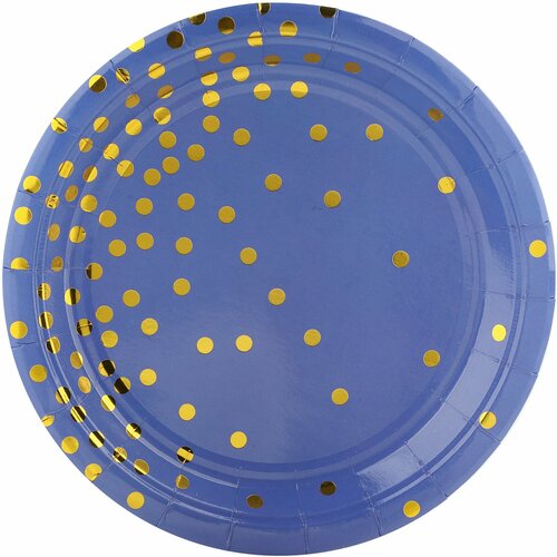 Тарелки (9'/23 см) Золотое конфетти, Синий/Золото, Металлик, 6 шт.
