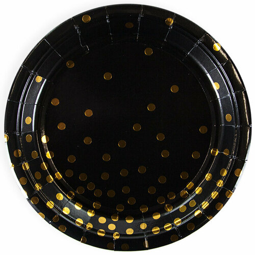 Тарелки (9'/23 см) Золотое конфетти, Черный/Золото, Металлик, 6 шт.