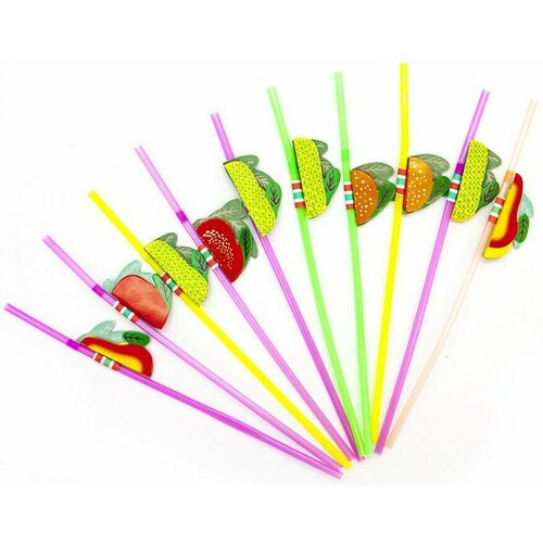 Трубочки для коктейлей (пластик), Фруктовый микс, Ассорти, 12 шт. в упак.