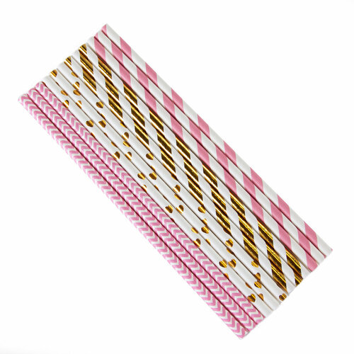 Трубочки для коктейлей, Розовый микс, Розовый/Белый/Золото, металлик, 12 шт. в упак.