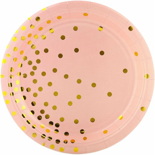 Тарелки (9'/23 см) Золотое конфетти, Розовый/Золото, Металлик, 6 шт.