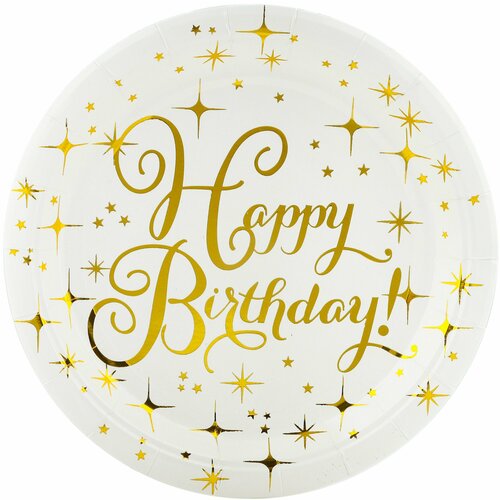 Тарелки (9'/23 см) Волшебный ДР, Белый/Золото, Металлик, 6 шт.