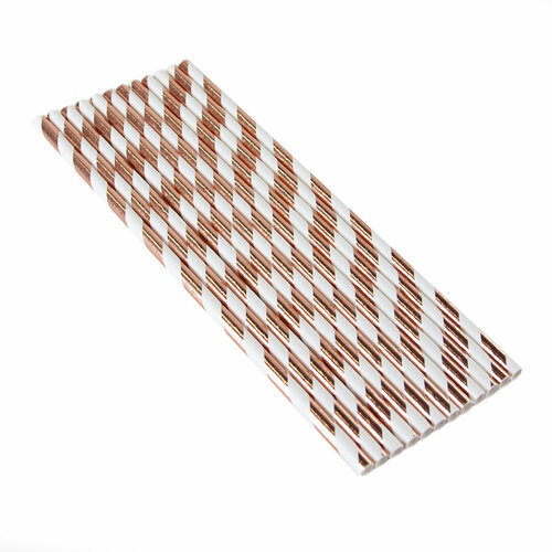 Трубочки для коктейлей, Полосы, Белый/Розовое золото, металлик, 12 шт. в упак.