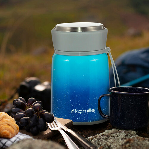 Термос пищевой 530 мл. из нержавеющей стали Kamille KM-2096 (2096 / синий)