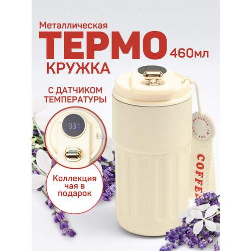 Термокружка автомобильная для кофе/чая с датчиком температуры, 420 мл, белая