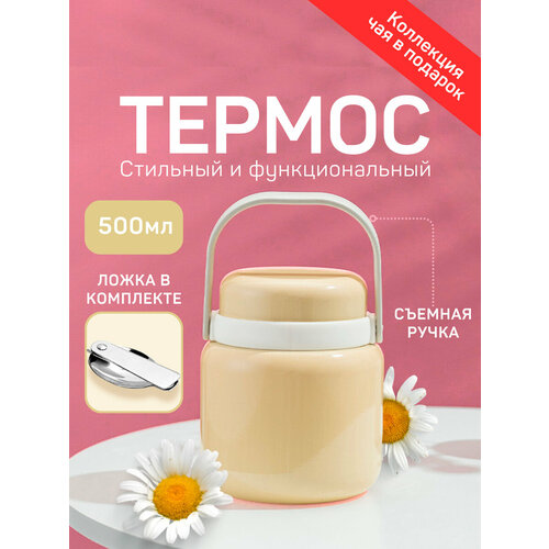 Термос для еды и чая, 500 мл, металлический с широким горлышком и ложкой в комплекте