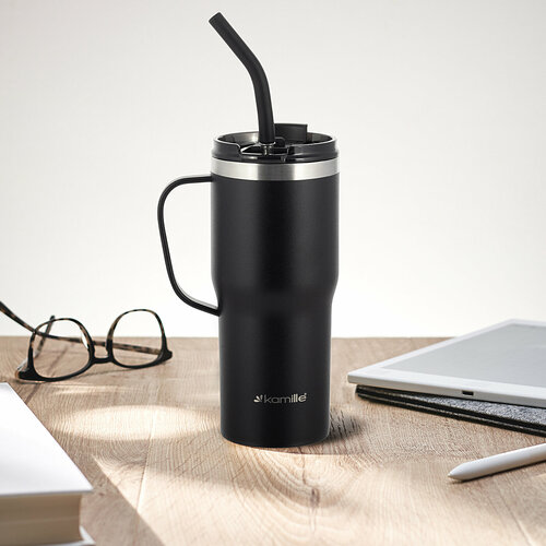 Термокружка 600 мл. из нержавеющей стали Kamille KM 2160 с трубочкой (0,6 л. /)