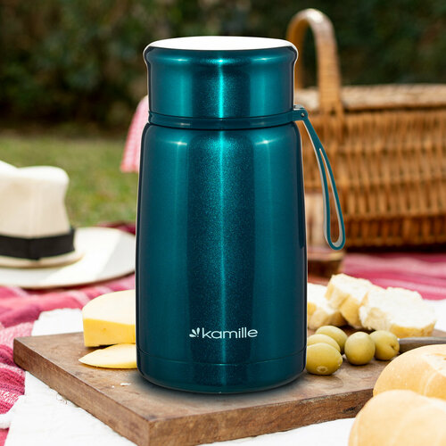 Термос Kamille KM-2060, 500мл. обладает высоким качеством, надежностью, компактными размерами и эстетичным дизайном. Горячее остается горячим, а холодное — холодным. Такой термос станет незаменимым в машине, на отдыхе или в путешествии. Время сохранения тепла - 8час. Время сохранения холода - 8час. Размеры: 10х15см.