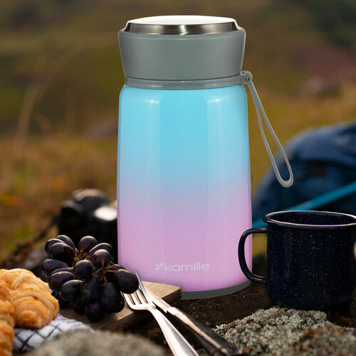 Термос пищевой 800 мл. Kamille KM 2148 из нержавеющей стали с ложкой и ремешком (2148 /)