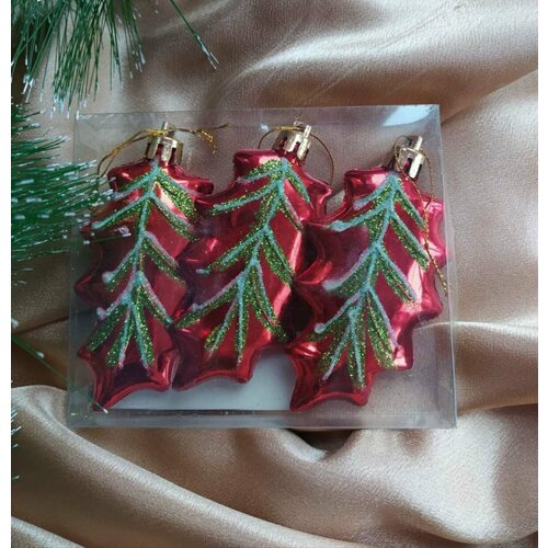 Украшение ёлочное "набор из 3 листиков 9 см"красный