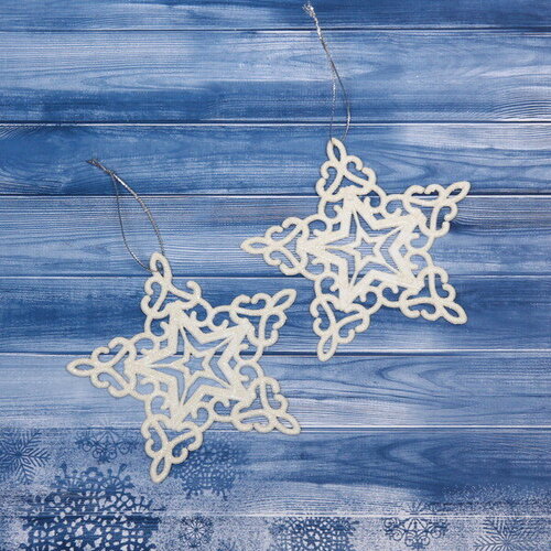 Подвески в блестках "Звездочки кружевные" 10 см (набор 2шт), белый