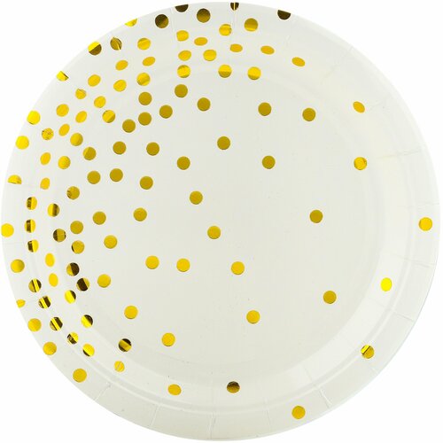 Тарелки (9'/23 см) Золотое конфетти, Белый/Золото, Металлик, 6 шт.