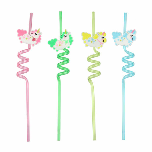 Трубочки для коктейлей (пластик), Зефирные единороги, Разноцветный, 4 шт. в упак.