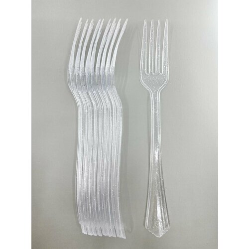 Ложки, Прозрачный/Серебро, с блестками, 17 см, 10 шт.