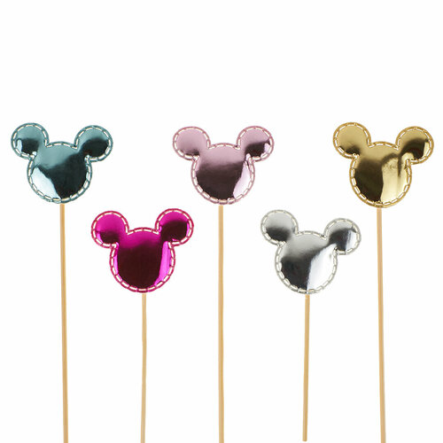 Пики Топперы, Мышки, Ассорти, Металлик, 12 см, 5 шт.