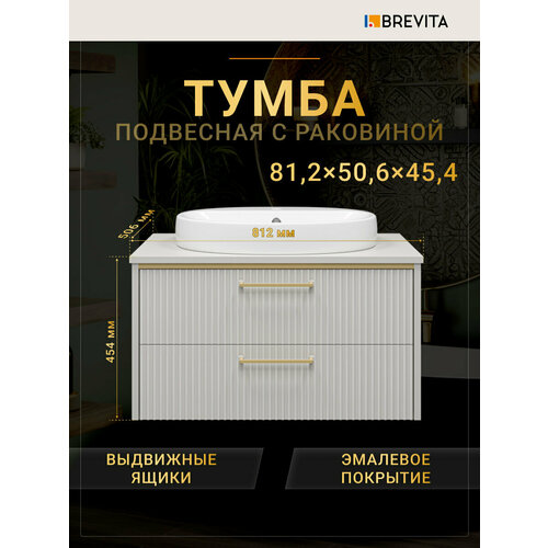 Тумба с раковиной подвесная Brevita ELCHE - 80 с 2 ящиками серый кашемир