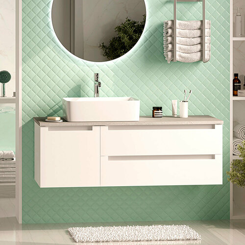 Тумба с раковиной подвесная Brevita Cargo 120 белая + столешница