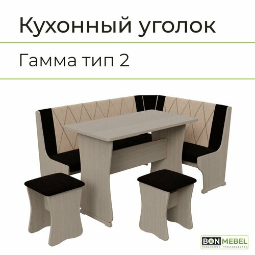 Кухонный уголок Гамма Тип 2 BONMEBEL Дуб Венге/ТК Коричневый/Беж,150x110x80 см