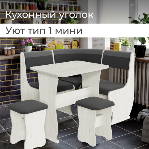 Кухонный уголок БонМебель Уют Тип 1 мини, Дуб Крафт белый/ТК Темно-серый серый, скамья угловая, стул, стол кухонный