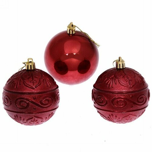 Новогодние шары 8 см (набор 3 шт) "Микс фактур", темный рубин