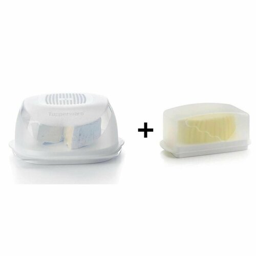 Набор : Сырница "Кроха" и Масленка "Очарование" в белом цвете . Tupperware